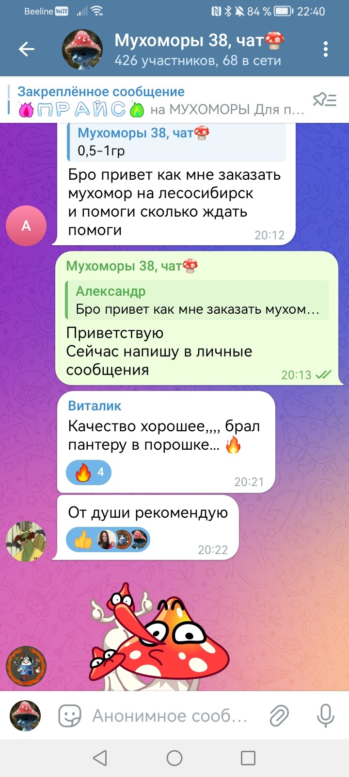 Если вы хотите купить мухоморы в Дзержинске, то пишите или звоните нам. Есть Красные и Пантерные мухоморы.